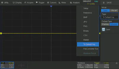 「Utility」>「Save/Recall」>「Type “To Default Key”」と進み「Save」を押すと、現在の状態がデフォルトとなります。最悪工場出荷時に戻せるので良いですね。