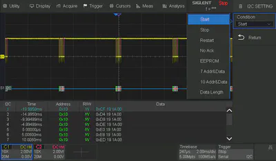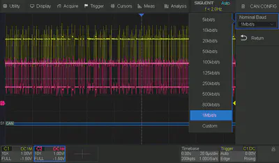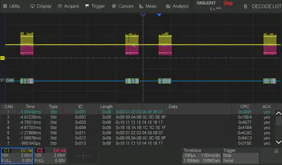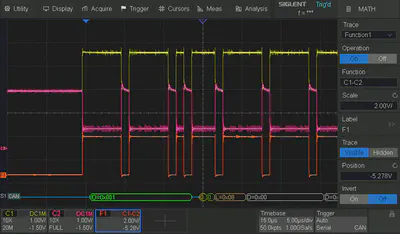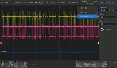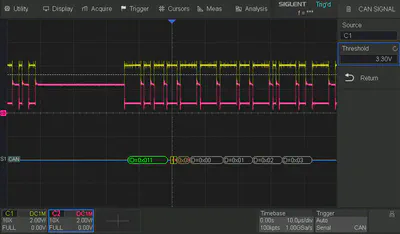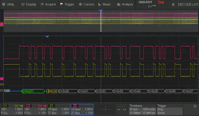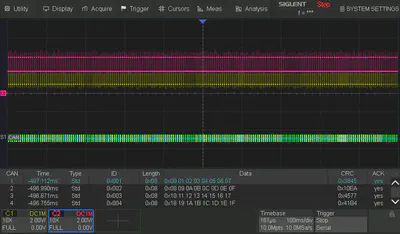 シリアル信号を解析する機能があるので、試しに I2C と CAN の信号を解析してみます。