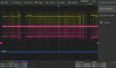 つまりデコードしつつ波形を固定しようとすると、通常のデコーダを有効化し、トリガのデコーダも有効化する、といった二段階の手順が必要になるわけです。