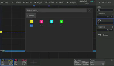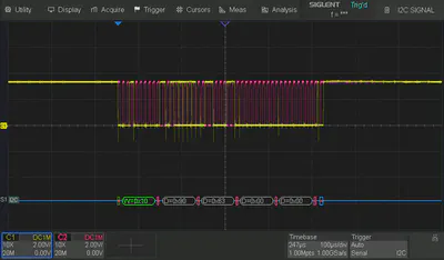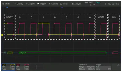 プローブは SDA (データ線) と SCL (クロック線) にあてています。