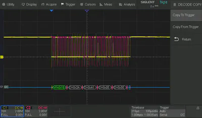 I2C と同じく、デコーダの設定をトリガのデコーダの方にコピーできます。